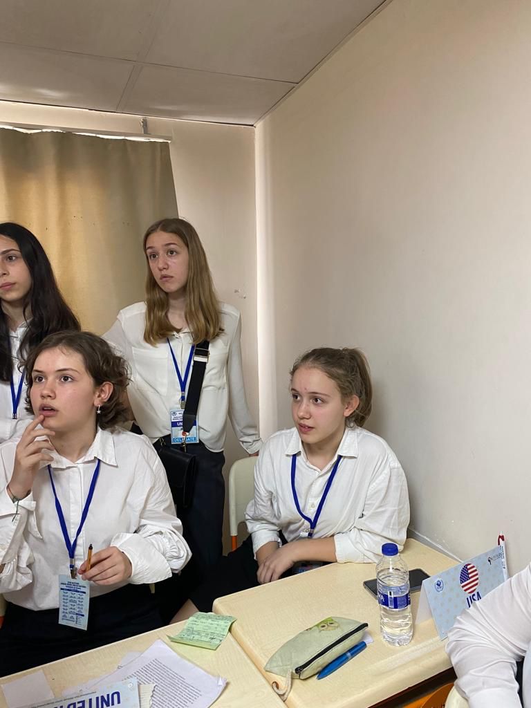 JMUN Kulübü öğrencilerimiz İngilizce olarak gerçekleştirilen konferans boyunca komitelerinde tartışılan dünya sorunlarına çözüm önerileri getirmiş ve çözüm önerilerini diğer delegelerle münazara ederek önerilerini resmi bir şekilde komisyona teslim ettiler.